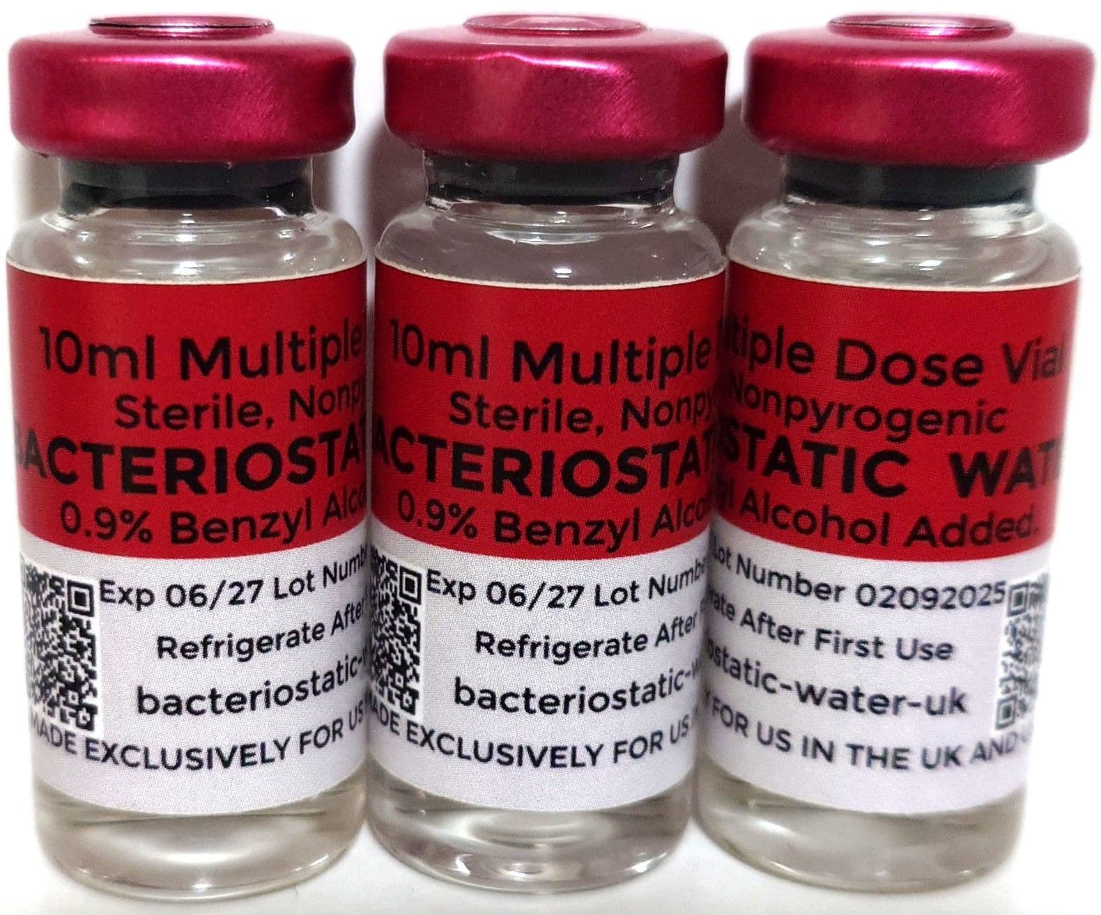 10ml Bacteriostatic Water from as low as £3.00 per vial and 30ml from as low as £6.00.